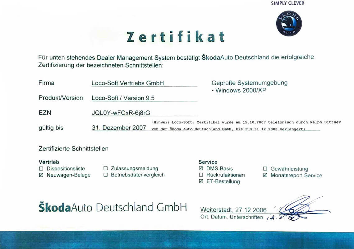 Loco-Soft erhält als erstes DMS das FIT-Zertifikat der Fiat Group Automobiles Germany AG. Das Zertifikat ersetzt die Softwareempfehlung der Fiat Group Automobiles Germany AG