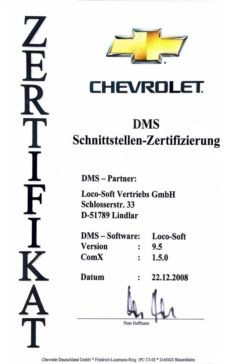Loco-Soft erhält das Softwarezertifikat der Chevrolet Deutschland GmbH und vergibt die 6.000. Programmlizenz