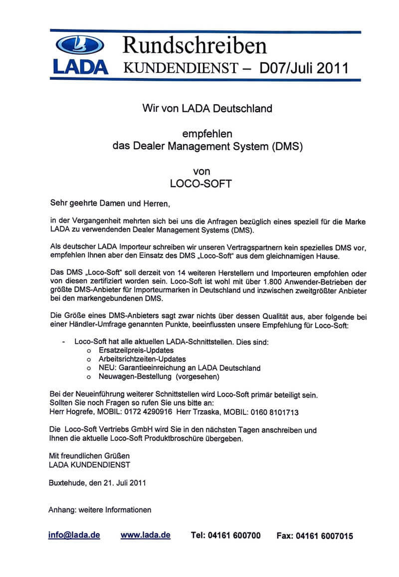 Über 2.000 Autohäuser in Deutschland, Österreich, der Schweiz und England setzen Loco-Soft ein