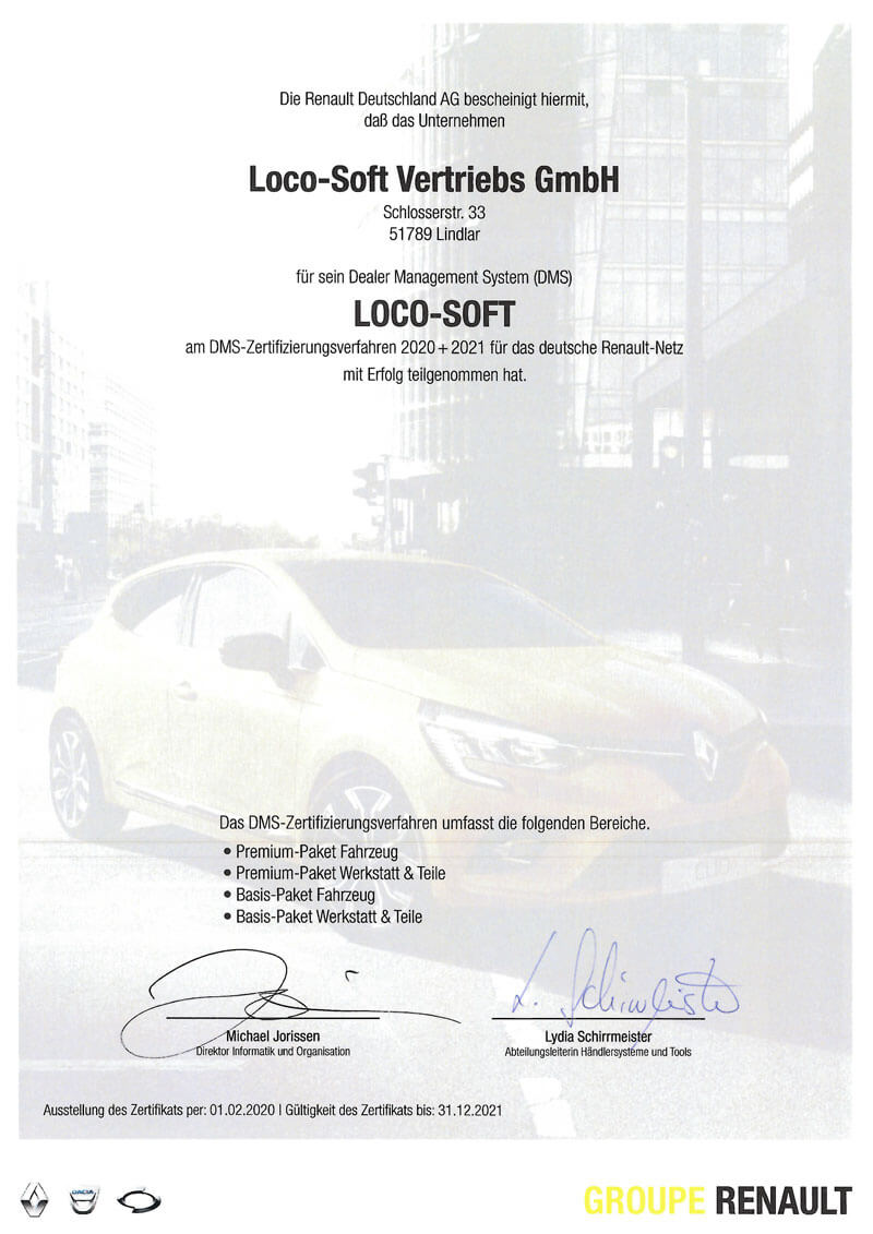 Loco-Soft wird von der Renault Deutschland AG als geeignetes DMS für seine Partner selektiert